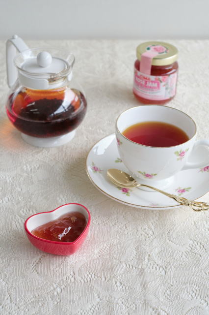 ローズジャムは、香りが華やかなので、温かい紅茶に溶かすと心ときめく香りが広がります。