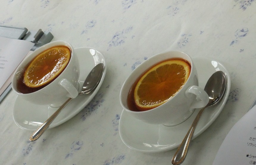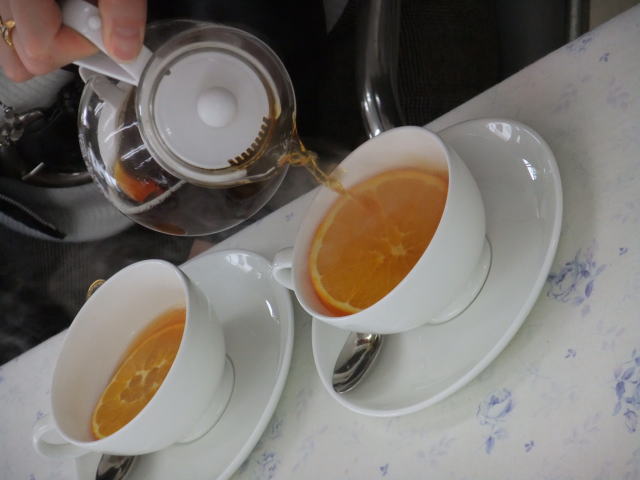 温かい紅茶が注がれたオレンジから爽やかな香りが広がります。