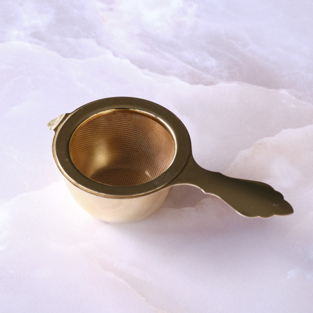 茶漉し部分は一重の網で見た目がとってもスッキリ。茶漉しの持ち手も受皿も余計な装飾がないシンプルなデザイン。どんなティーポットやティーカップとも合わせやすいはずです。
