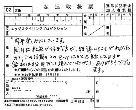 再購入時にメッセージをいただきました。
